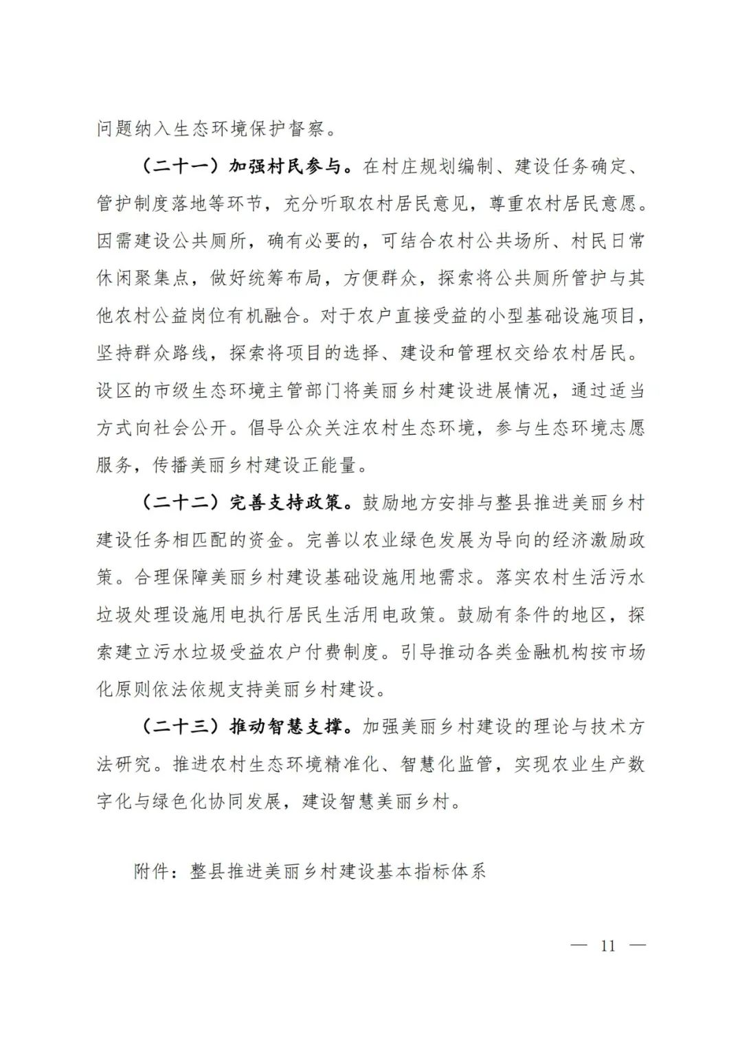 近日,生態(tài)環(huán)境部、農(nóng)業(yè)農(nóng)村部、國家發(fā)展和改革委員會、財(cái)政部、住房城鄉(xiāng)建設(shè)部等9部門聯(lián)合印發(fā)《美麗鄉(xiāng)村建設(shè)實(shí)施方案》(以下簡稱《實(shí)施方案》),提出4方面重點(diǎn)任務(wù)、18項(xiàng)重要舉措,加強(qiáng)農(nóng)村生態(tài)文明建設(shè),加大農(nóng)業(yè)農(nóng)村領(lǐng)域突出生態(tài)環(huán)境問題解決力度,整縣推進(jìn)美麗鄉(xiāng)村建設(shè),助力美麗中國建設(shè)。