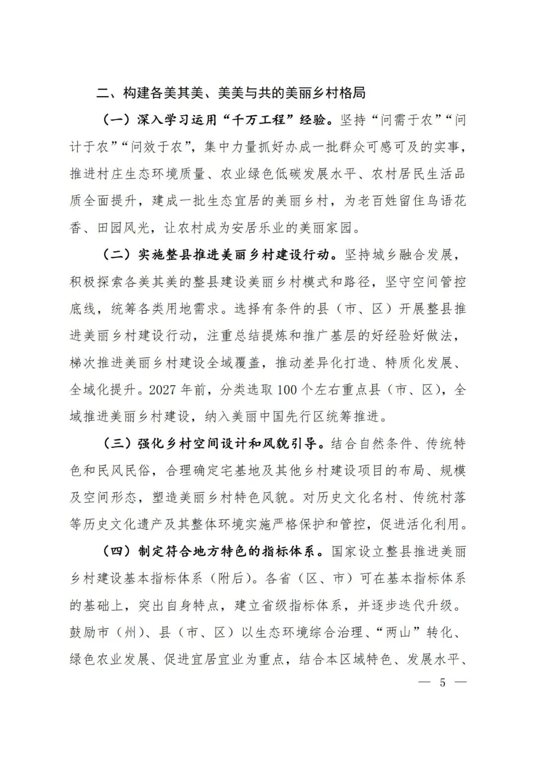 《實(shí)施方案》提出的4方面重點(diǎn)任務(wù)主要包括:構(gòu)建各美其美、美美與共的美麗鄉(xiāng)村格局。實(shí)施整縣推進(jìn)美麗鄉(xiāng)村建設(shè)行動(dòng),梯次推進(jìn)美麗鄉(xiāng)村建設(shè)全域覆蓋。強(qiáng)化鄉(xiāng)村空間設(shè)計(jì)和風(fēng)貌引導(dǎo),塑造美麗鄉(xiāng)村特色風(fēng)貌。制定符合地方特色的指標(biāo)體系,逐步迭代升級。