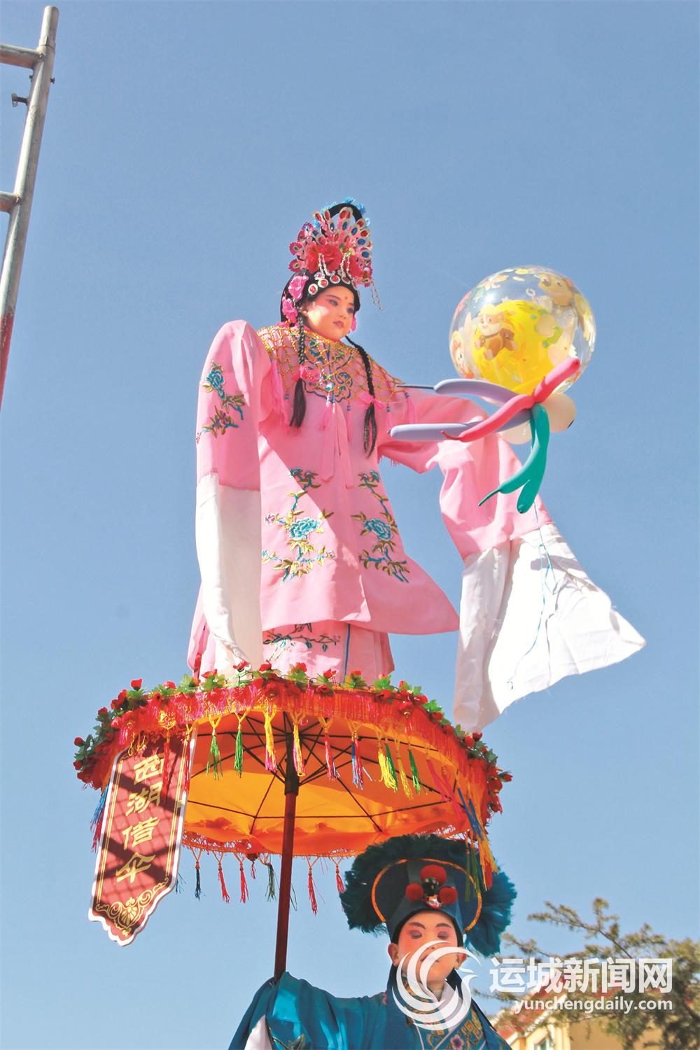 當(dāng)天,河津市僧樓鎮(zhèn)帶來(lái)的表演分為“河汾門下”“風(fēng)追大唐”“時(shí)代雄風(fēng)”“春和萬(wàn)象”4個(gè)篇章,通過(guò)原創(chuàng)古風(fēng)舞蹈、武術(shù)、高蹺斗舞、轉(zhuǎn)花燈等多種表現(xiàn)形式,將傳統(tǒng)文化與現(xiàn)代藝術(shù)巧妙融合;河津市小梁鄉(xiāng)不甘示弱,馬拉鼓車、炫酷摩托車隊(duì)表演、花車舞獅、紙馬旱船、打花鼓等社火節(jié)目輪番上演。其中,馬家莊抬閣驚艷亮相,數(shù)米高的架子上,身著彩服保持固定姿勢(shì)的兒童賣萌搞怪,惹得大家捧腹大笑。